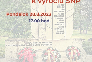 Pozývame vás na pietnu spomienku k výročiu SNP, ktorá sa uskutoční v pondelok 28.8.2023 o 17:00 hodine.