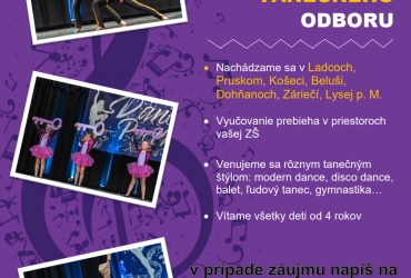 Súkromná základná umelecká škola Ladce otvára tanečný odbor aj v našej obci.