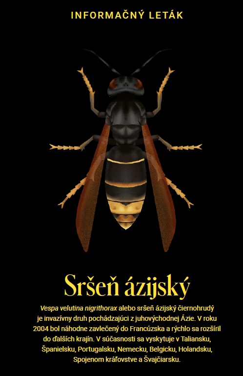 Podrobný popis druhu sršňa ázijského, rozlišovacie znaky a odporúčania čo robiť v prípade jeho lokalizácie nájdete v priložených dokumentoch.“